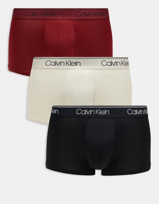 Calvin Klein Microfibre Stretch 3 pack low rise trunk in black/red/neutral