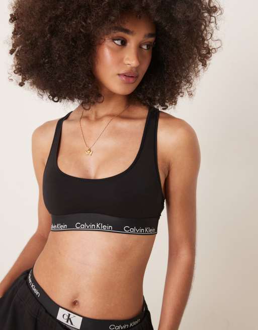 Calvin Klein modern cotton logo tape bralette in black