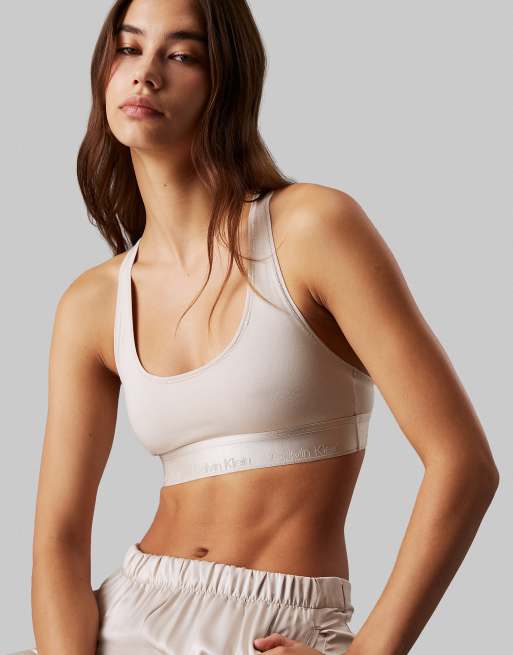 Calvin Klein Modern Cotton unlined racerback bralette with metallic logo taping in cream