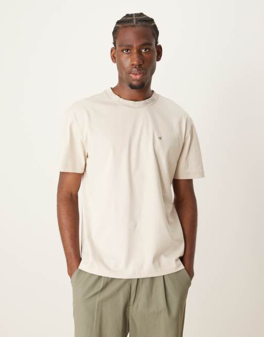 Calvin Klein neck logo t-shirt in beige