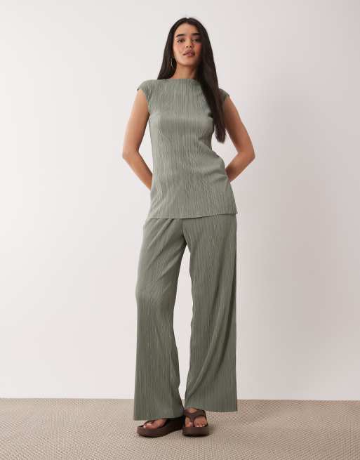 Calvin Klein plisse pull-on trousers co-ord in sage green