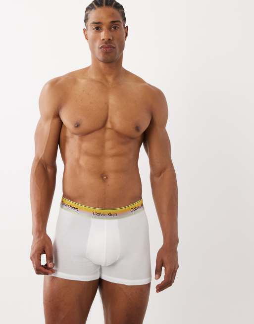Calvin Klein Pride Cotton trunks in white with rainbow waistbands