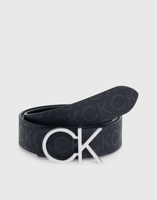 Calvin Klein Reversible Leather Logo Belt in Black Epi Mono/Black