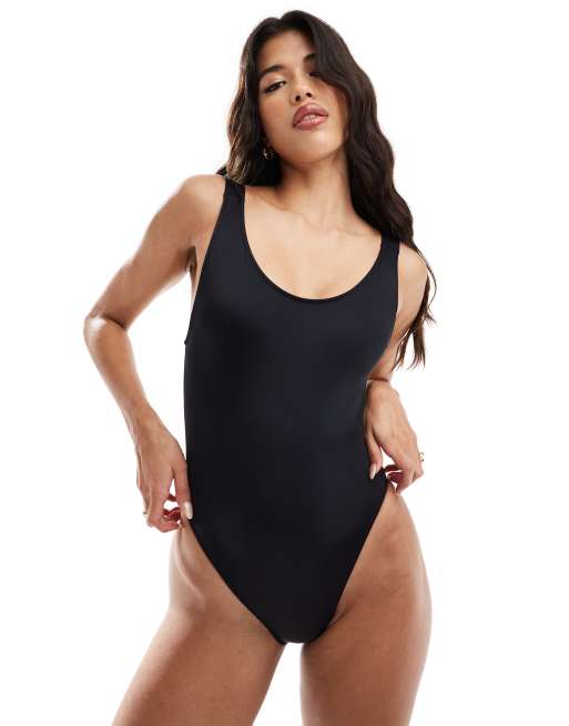 Calvin Klein scoop high leg swimsuit in black