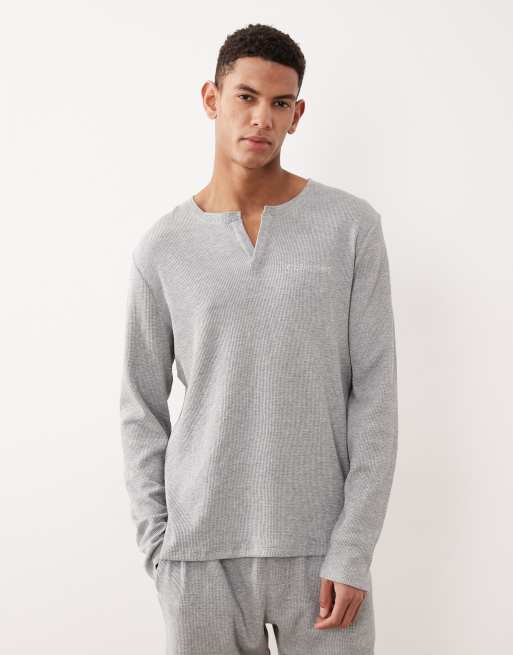 Calvin Klein Waffle loungewear henley top co-ord in grey