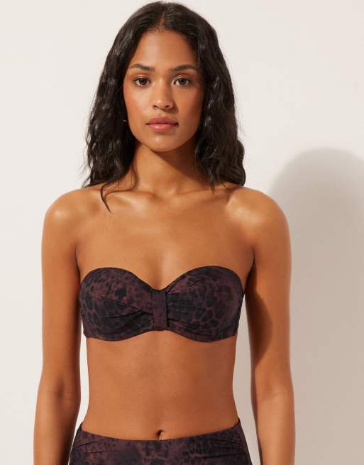 Calzedonia Bandeau bikini top dark animalier in dark brown animalier