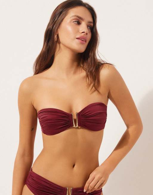 Calzedonia Bandeau bikini top shiny satin in dark red