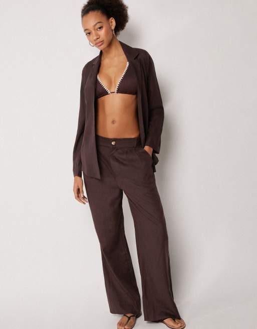 Calzedonia Beach trousers with linen and viscose in coco brown