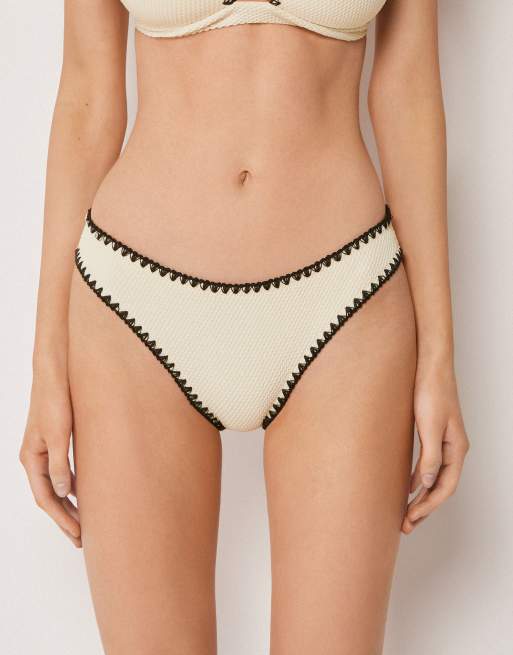 Calzedonia Bikini bottoms bicolor embroidery in white