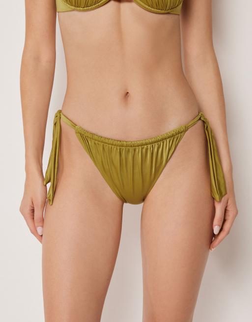 Calzedonia Bikini briefs with side ties shiny satin in green gold