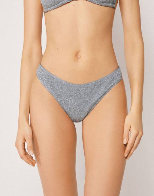 Calzedonia Brazilian bikini bottoms metallic glow in silver blue