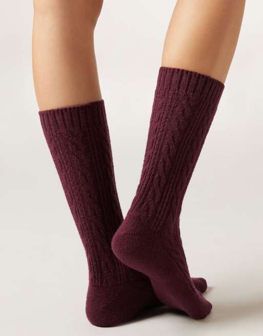 Calzedonia Cable-patterned socks in bordeaux