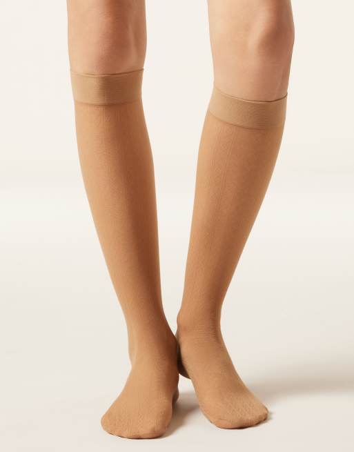 Calzedonia Diamond-patterned knee-high-socks in natural beige