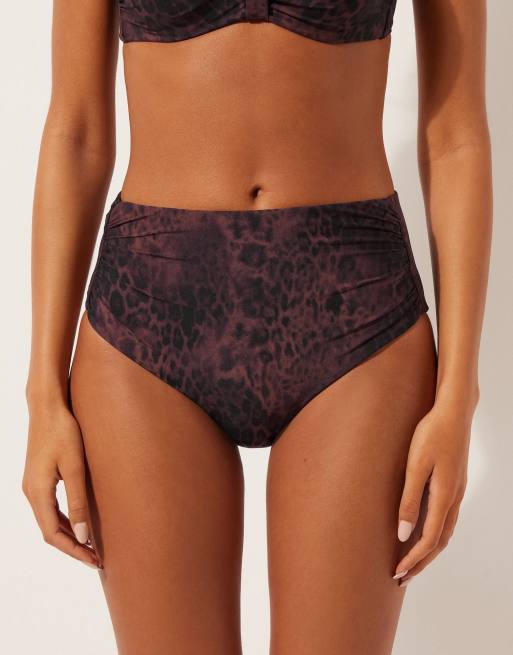 Calzedonia High-waist bikini bottom dark animalier in dark brown animalier