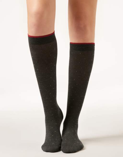 Calzedonia Long patterned socks in anthracite grey micro polka