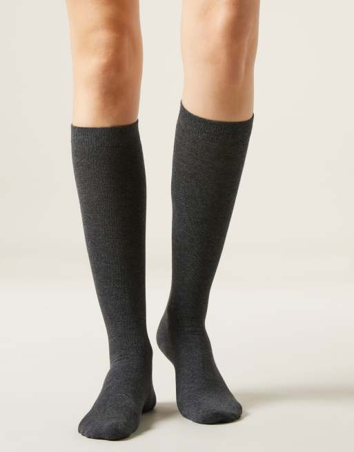 Calzedonia Long satin cotton socks in charcoal grey blend