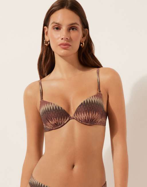 Calzedonia Push-up bikini top golden chevron in brown gold chevron