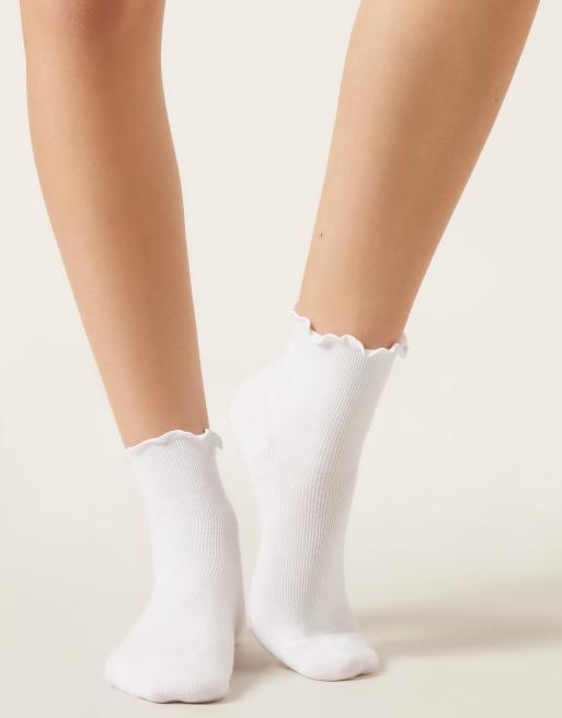 Calzedonia Ribbed short socks with romantic trim in white
