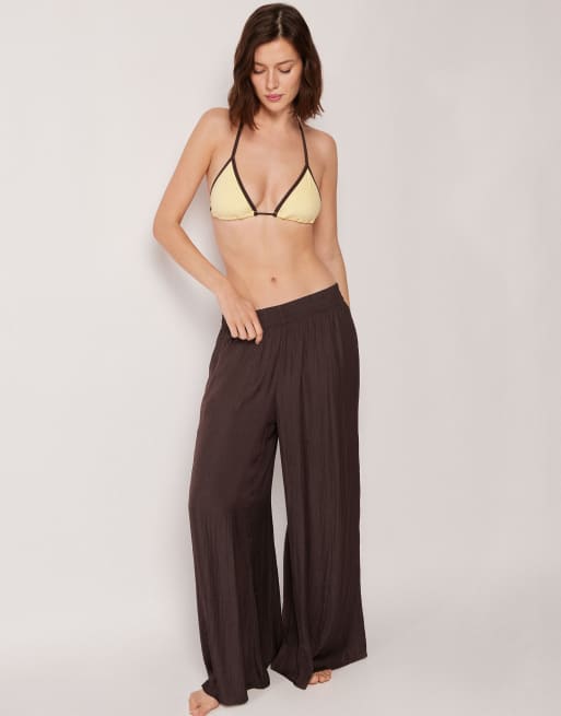 Calzedonia Shiny palazzo beach trousers in coco brown