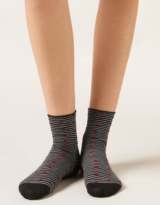Calzedonia Stripe and heart socks in black stripes