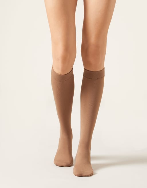 Calzedonia Thermal ultra-opaque knee-high socks in beige caramel