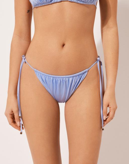 Calzedonia Tie brazilian bikini bottoms shiny satin in shiny satin light blue powder
