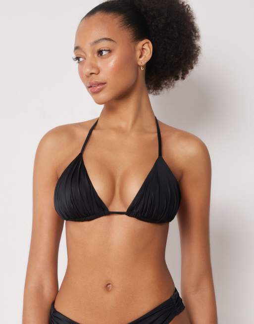 Calzedonia Triangle bikini top shiny satin in black and white