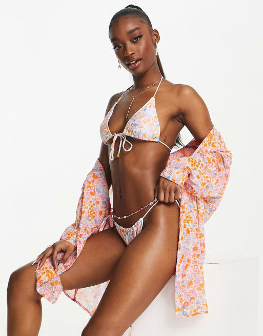 Candypants tie side bikini bottom in pastel ditsy print - MULTI