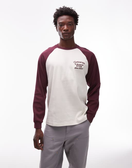 Carhartt WIP alston long sleeve loose fit t-shirt in white and burgundy