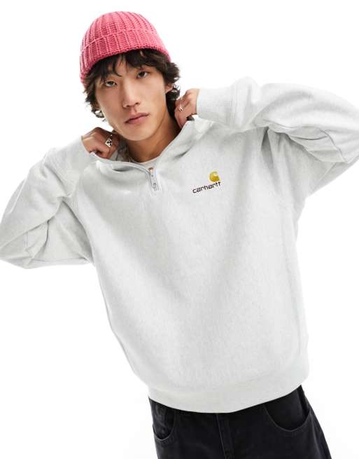Carhartt WIP american script half zip sweatshirt in grey