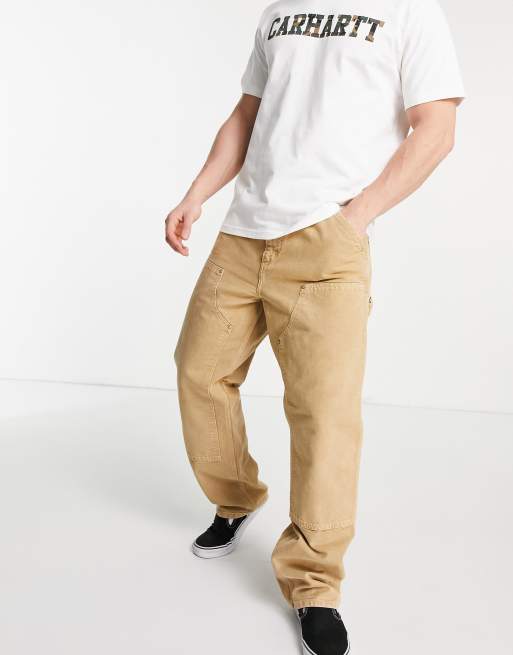 Carhartt WIP double knee work pant relaxed straight fit in washed brown