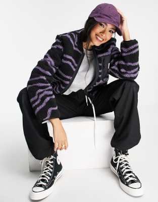 Carhartt WIP zip front fleece jacket in wave print with contrast pocket