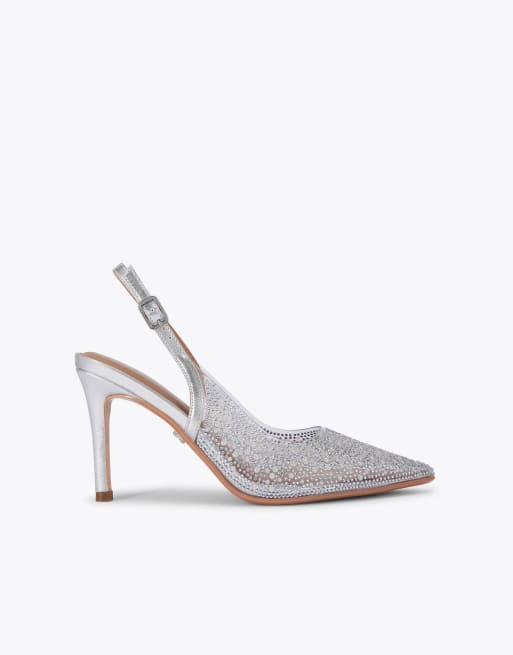 Carvela Positano vinyl sling back heeled shoes in silver