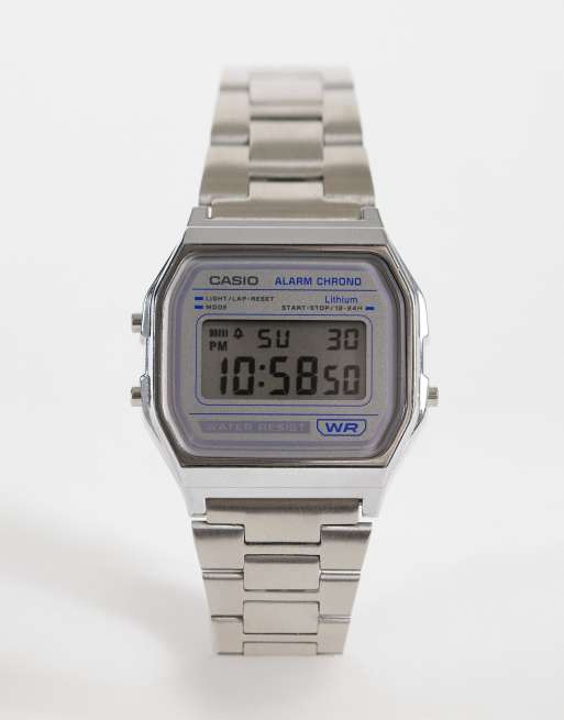 Casio A158WEA-7EF retro digital watch in silver/blue