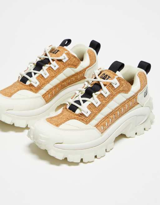 CAT Intruder chunky lace up trainers in white and cork
