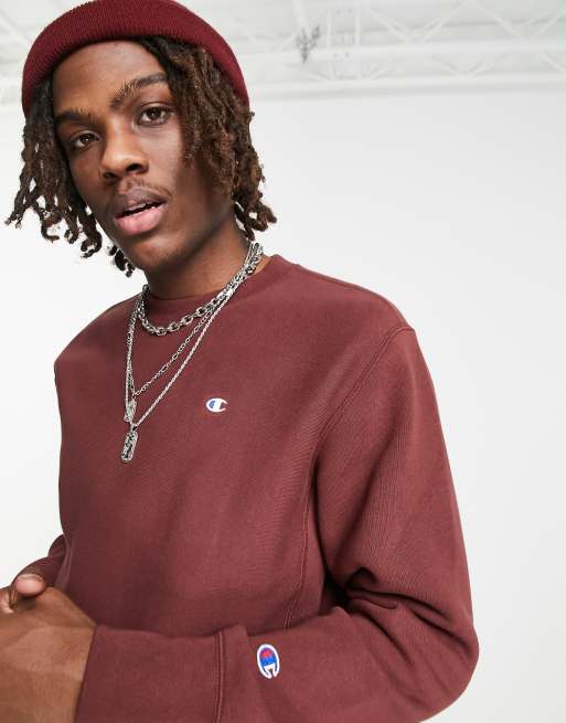 Champion Reverse Weave embroidered small logo sweatshirt in burgundy