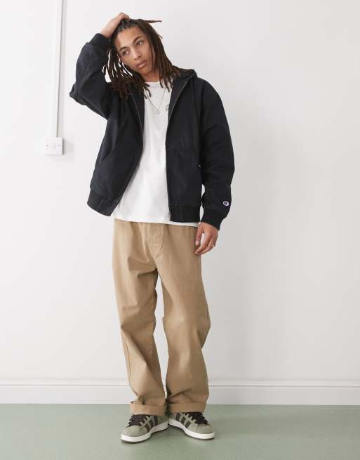 Champion zip up woven hooded jacket in black