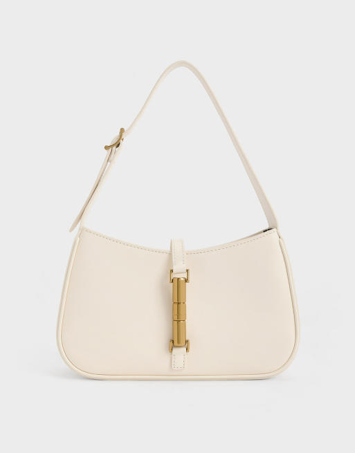 Charles & Keith Cesia metallic-accent shoulder bag in cream