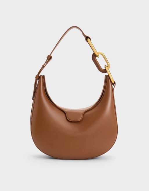 Charles & Keith Kora metallic-accent moon bag in chocolate