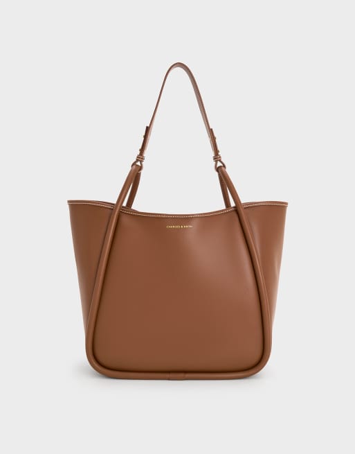 Charles & Keith Lyla tubular slouchy tote bag in chocolate