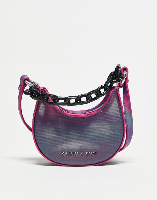 Charles & Keith mini crossbody bag with chunky chain in ombre pink