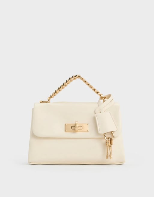Charles & Keith Mini kerry chain-handle crossbody bag in cream
