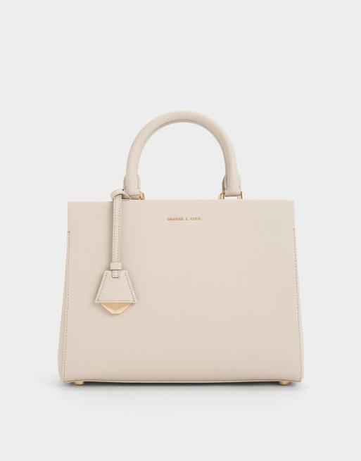 Charles & Keith Mirabelle structured top handle bag in ivory
