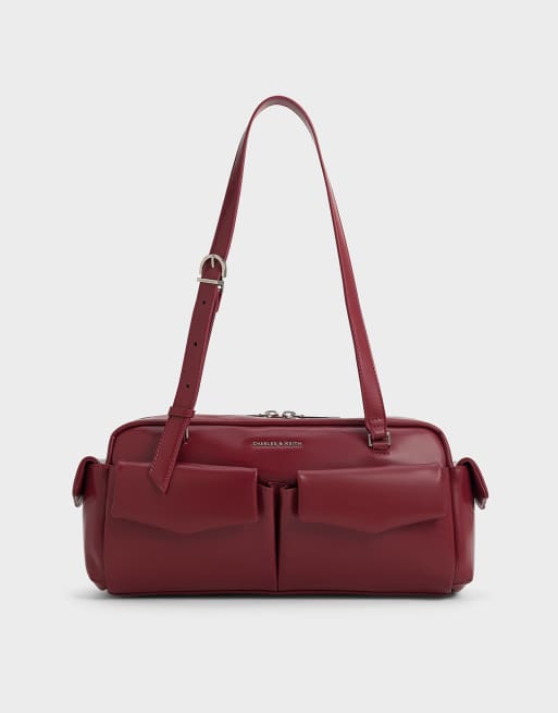 Charles & Keith Rachel elongated multi-pocket shoulder bag in burgundy