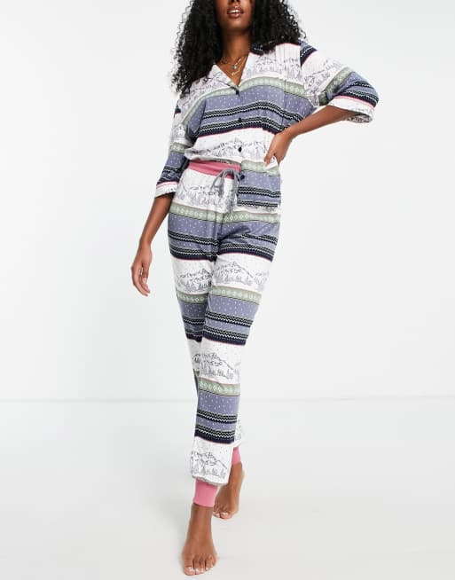 Chelsea Peers button through pyjama set in mountain fairisle print
