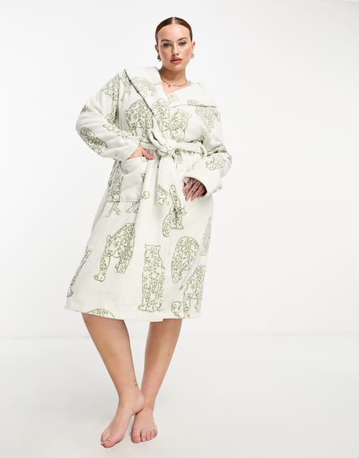 Chelsea Peers Curve leopard print towelling robe in off white