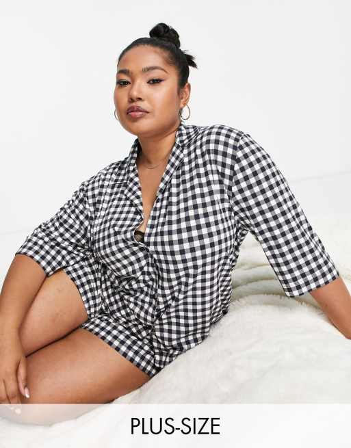 Chelsea Peers Plus short pyjama set in black gingham check