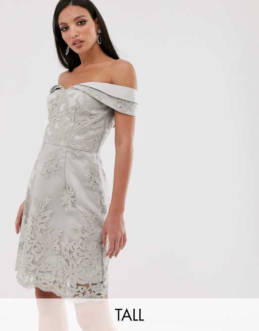 Chi Chi London Tall bardot jacquard mini dress in grey