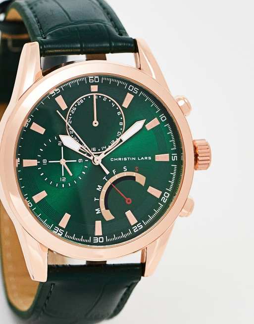 Christin Lars multi dial watch in dark green