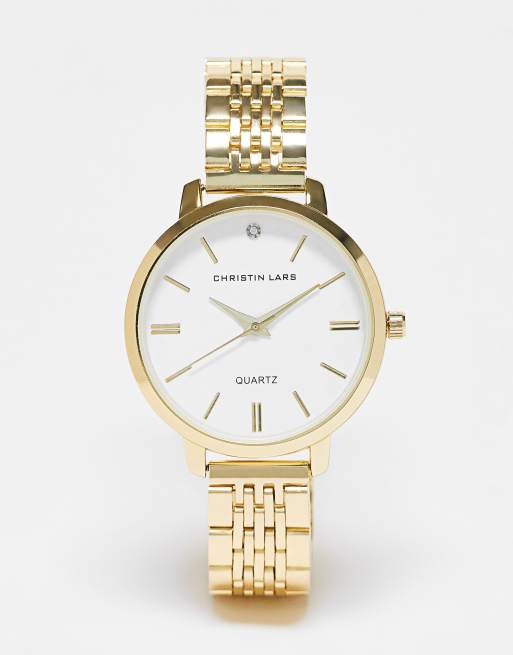Christin Lars slim link strap watch in gold